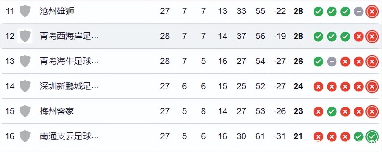 而在本轮联赛中碰到失利的两支青岛球队,当今的处境遏抑乐不雅。青岛西海岸0-4惨败,但28分的积分仍让他们保捏着相对安全的位置,终末2轮联赛,惟一赢一场就大致完资本赛季的保级任务。